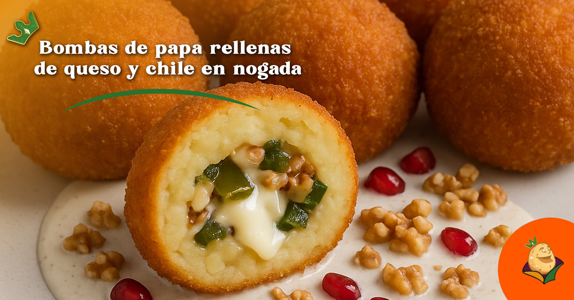 Bombas de papa rellenas de queso y chiles en nogada