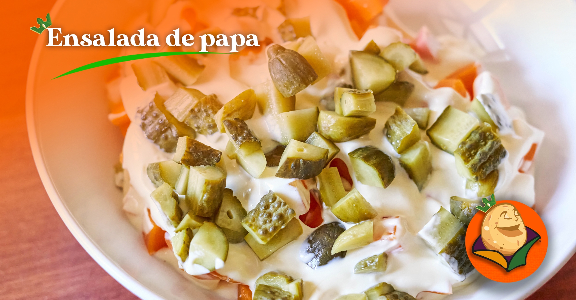 Ingredientes: 6 papas medianas 3 huevos cocidos 1/2 manojo de apio finamente picado 1/2 cebolla blanca picada 1/4 taza de pepinillos dulces picados 1 cucharadita de mostaza 1/4 taza de mayonesa 1 cucharadita de cebolla en polvo 1/2 cucharadita de vinagre Sal y pimienta al gusto