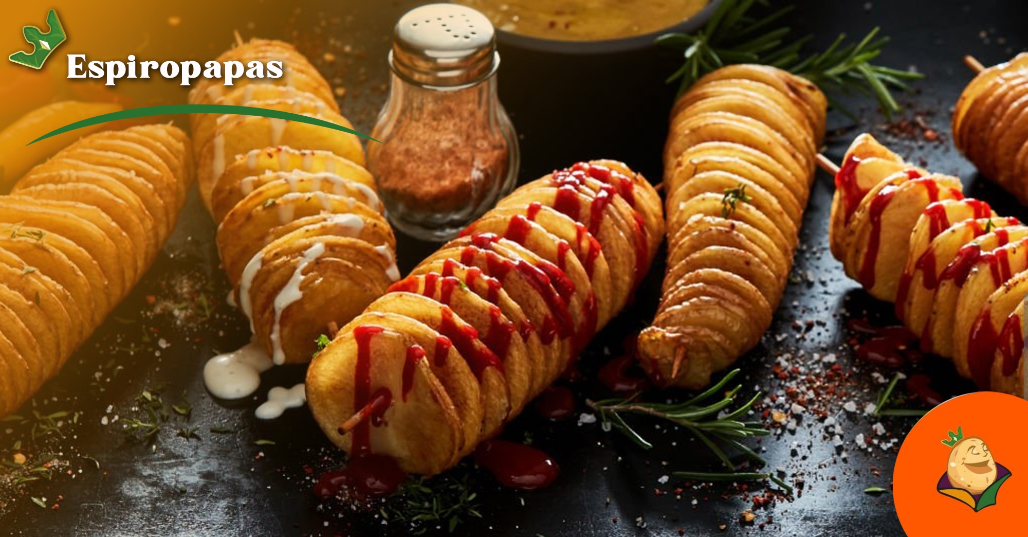 Cortar en espiral: Con un cuchillo, empieza a cortar desde un extremo de la papa en forma diagonal, girando la papa mientras mantienes el cuchillo en el mismo ángulo hasta llegar al otro extremo. Deberías obtener una forma de espiral que puedes separar un poco con los dedos. También puedes usar un espiralizador si tienes uno.