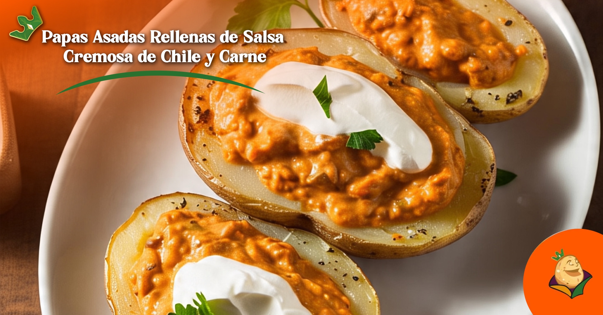 Papas Asadas Rellenas de Salsa Cremosa de Chile y Carne