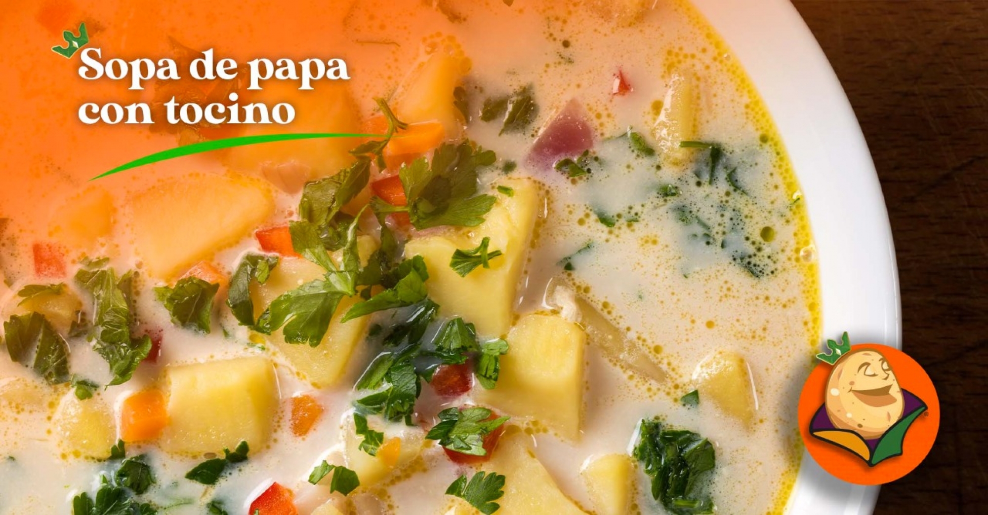 Ingredientes: 2 papas peladas y cortadas en cubos 2 cucharaditas de mantequilla 1/2 taza de poro picado finamente 1 diente de ajo 1 taza de crema ácida 1 taza de caldo de vegetales 1 cucharadita de jengibre fresco rallado 1 cucharadita de ralladura de naranja 4 rebanadas gruesas de tocino en cubos 2 cucharaditas de perejil fresco picado Sal y pimienta al gusto Pan tostado