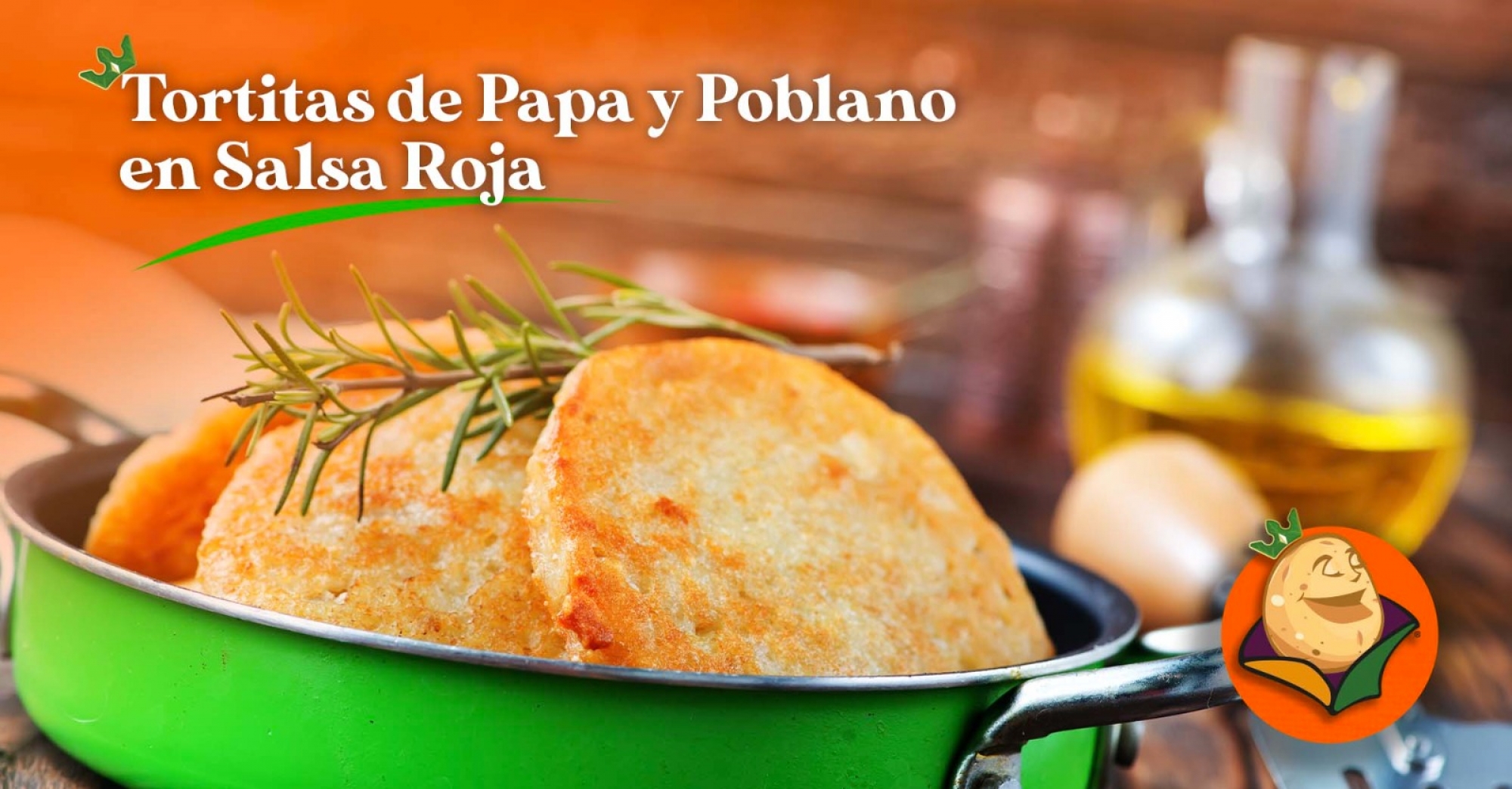 Para las tortitas, en un tazón machaca las papas cocidas hasta obtener un puré. Mezcla con el queso panela, las rajas de chile poblano, el huevo, el pan molido y sazona con Caldo de Pollo.
